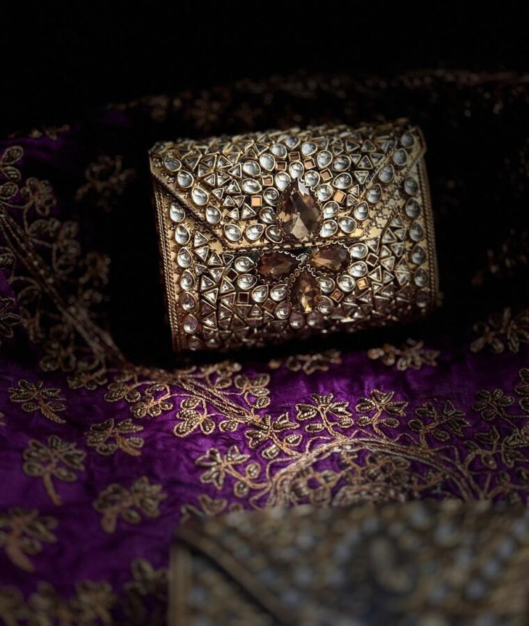 Rang-e-Sitara – Red, gold & green kundan mini clutch
