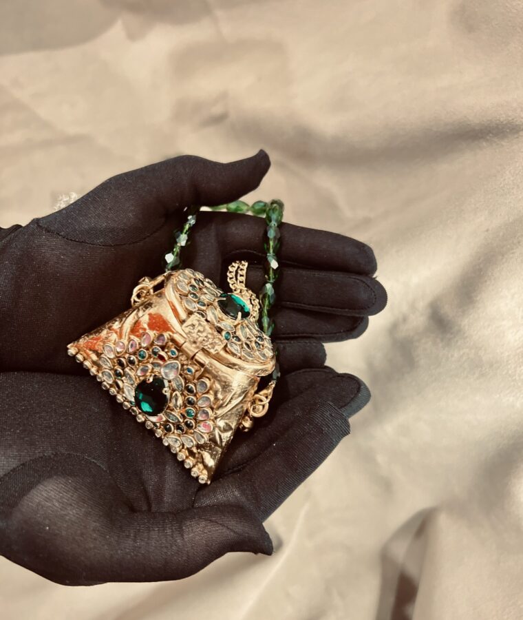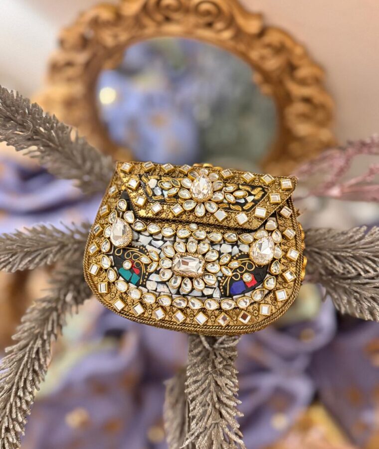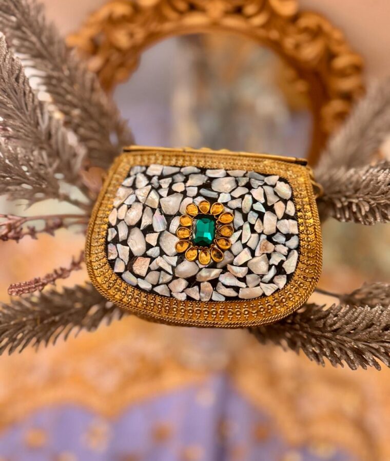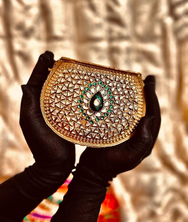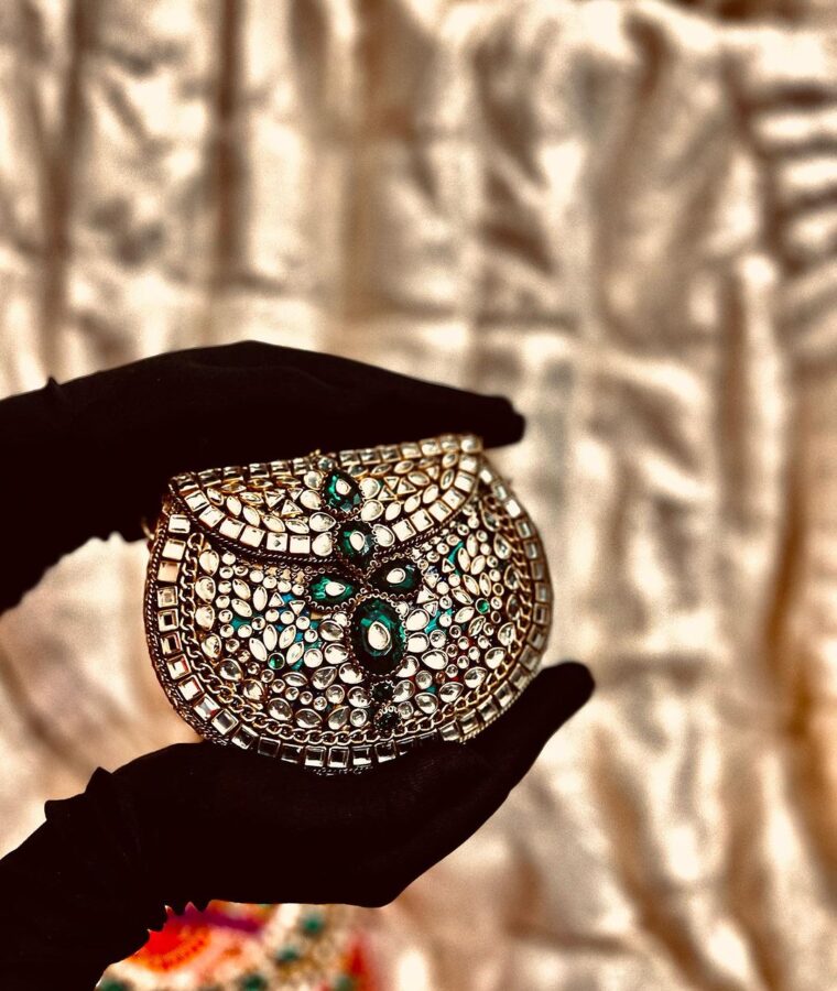 Rang-e-Sitara – Red, gold & green kundan mini clutch