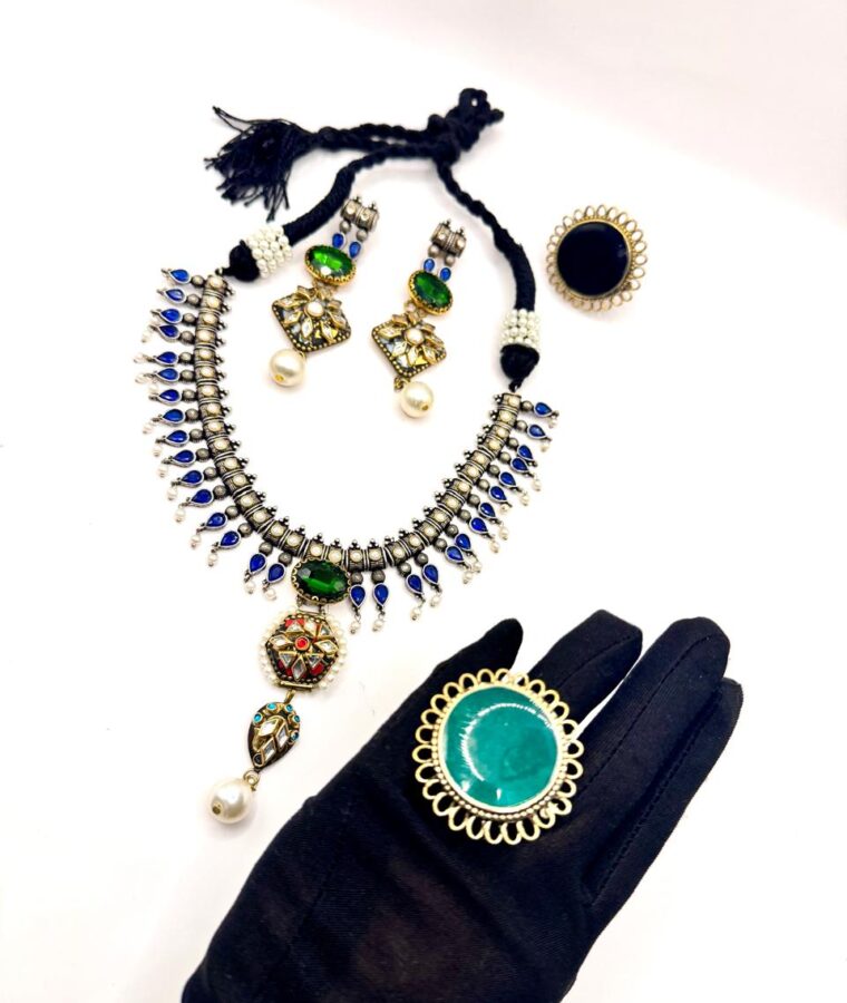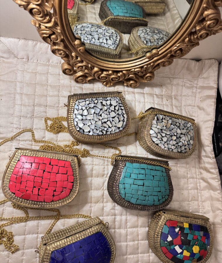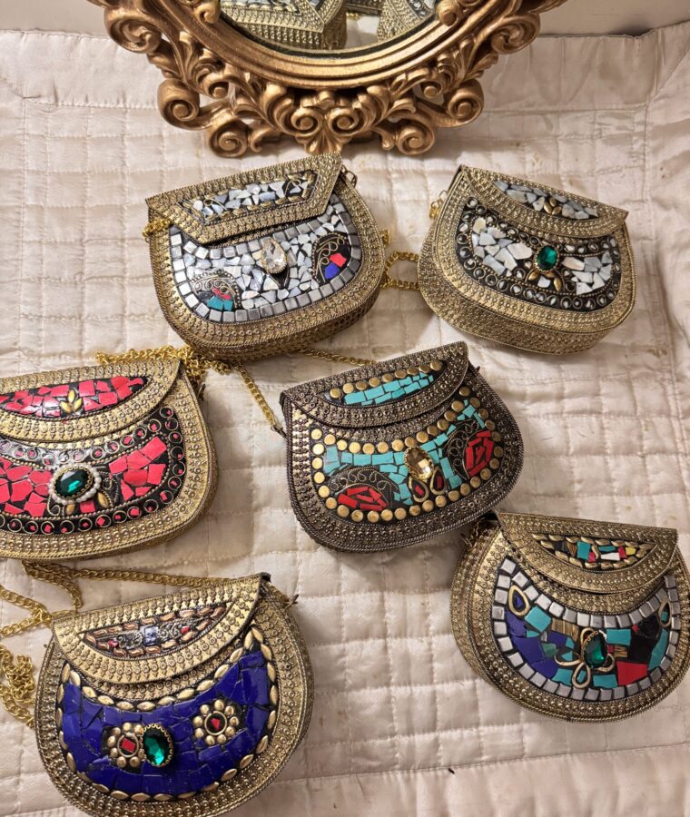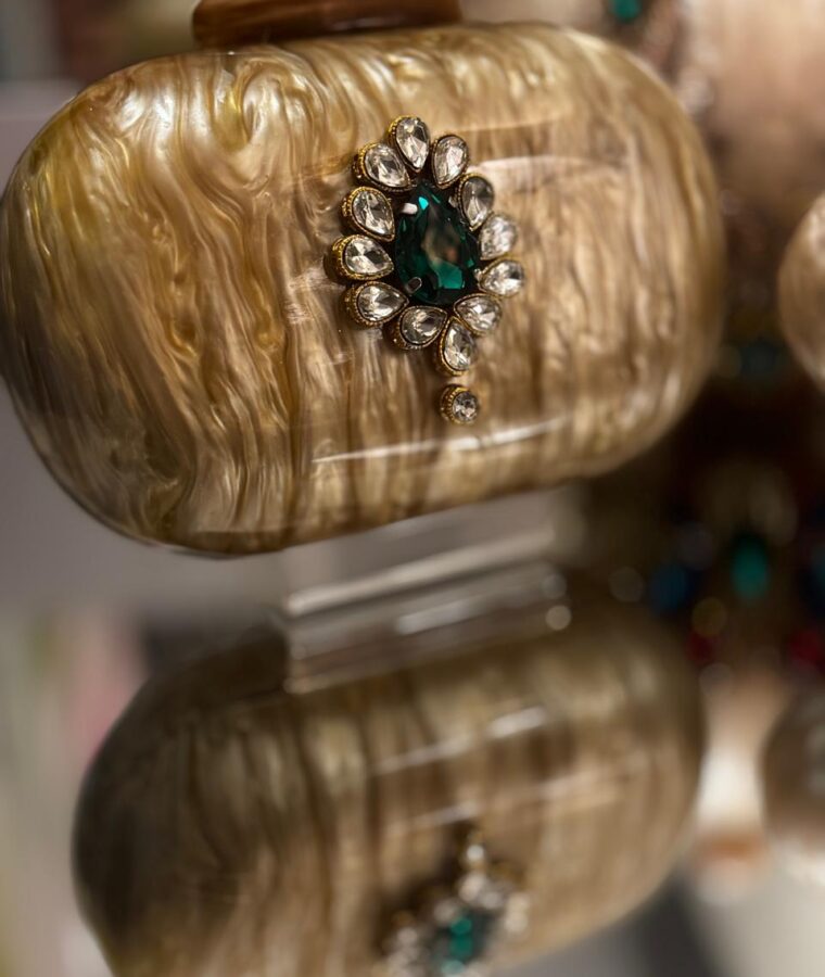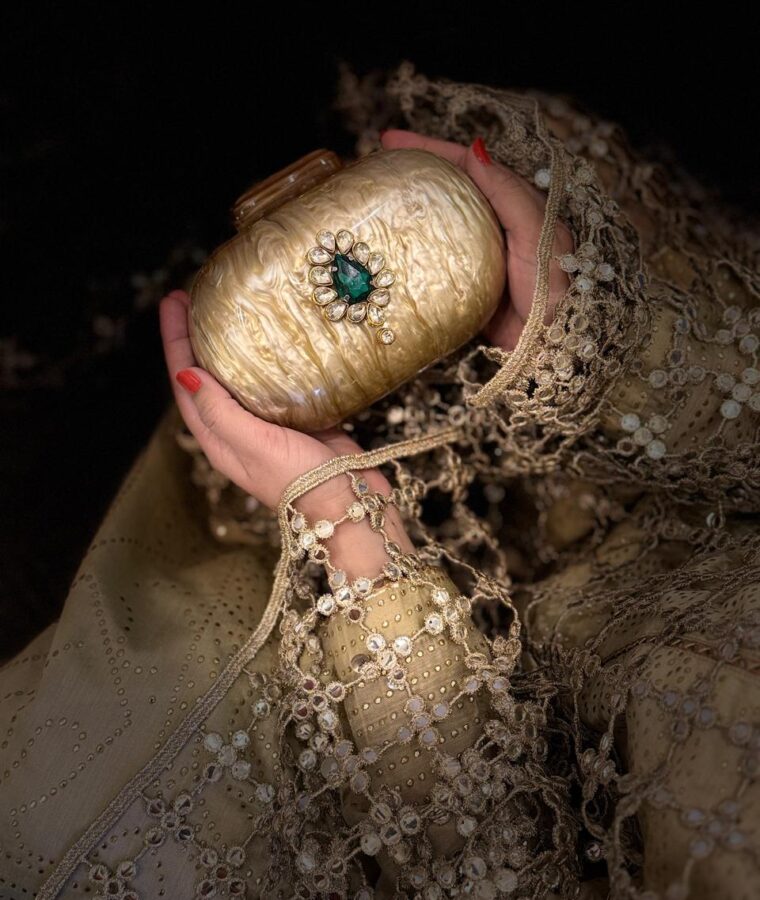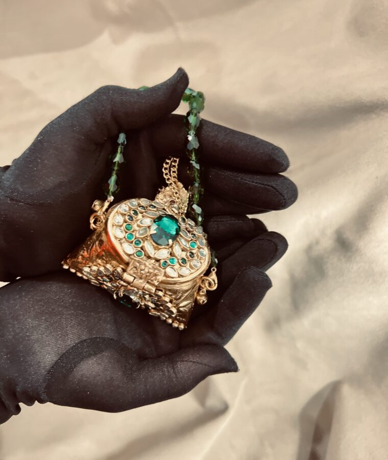 Rang-e-Sitara – Red, gold & green kundan mini clutch
