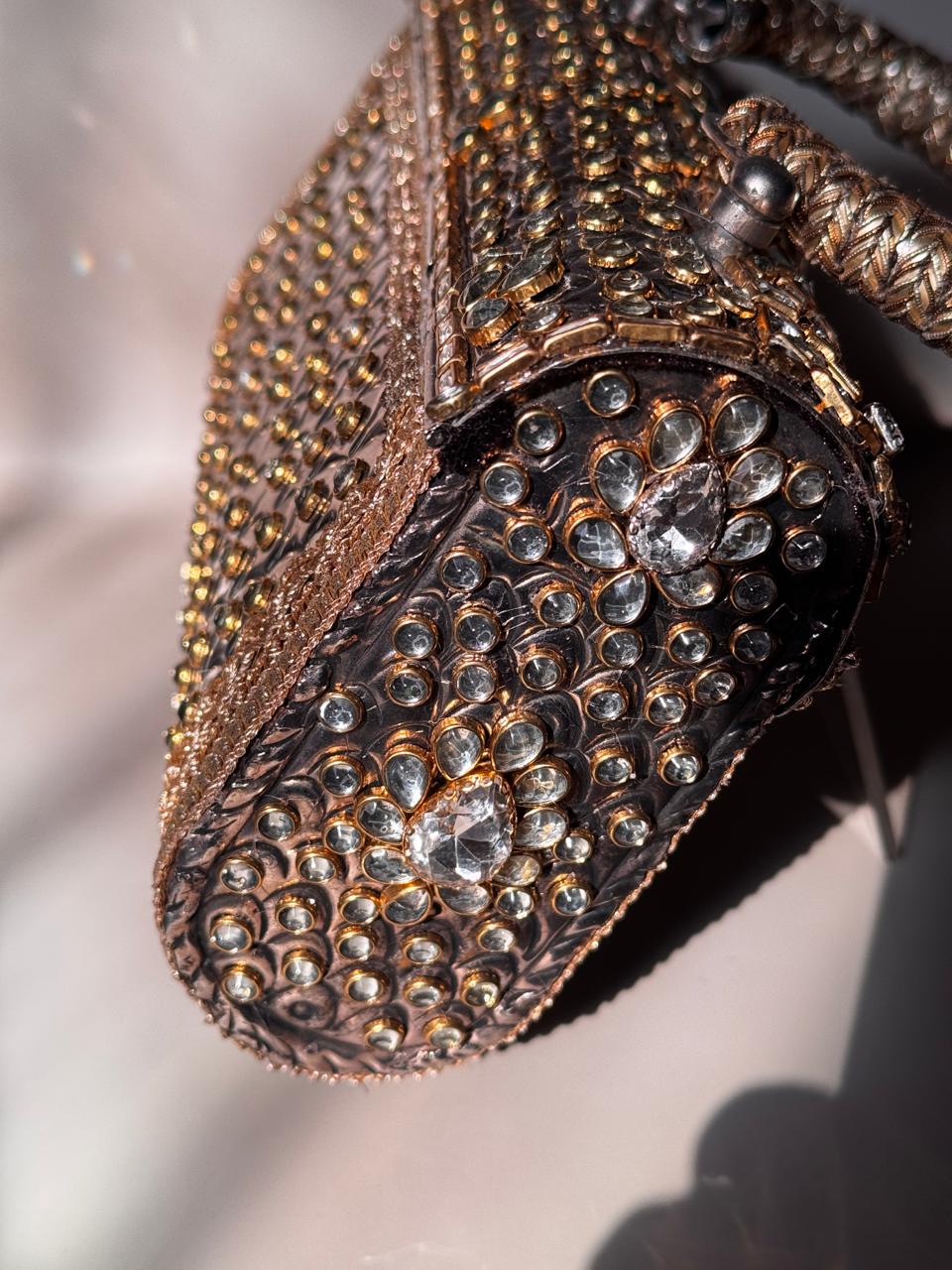 Description: Metal base, encrusted with kundan embellishments