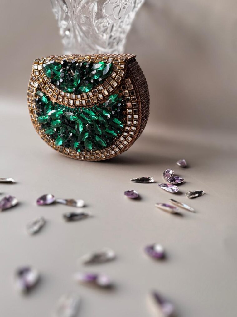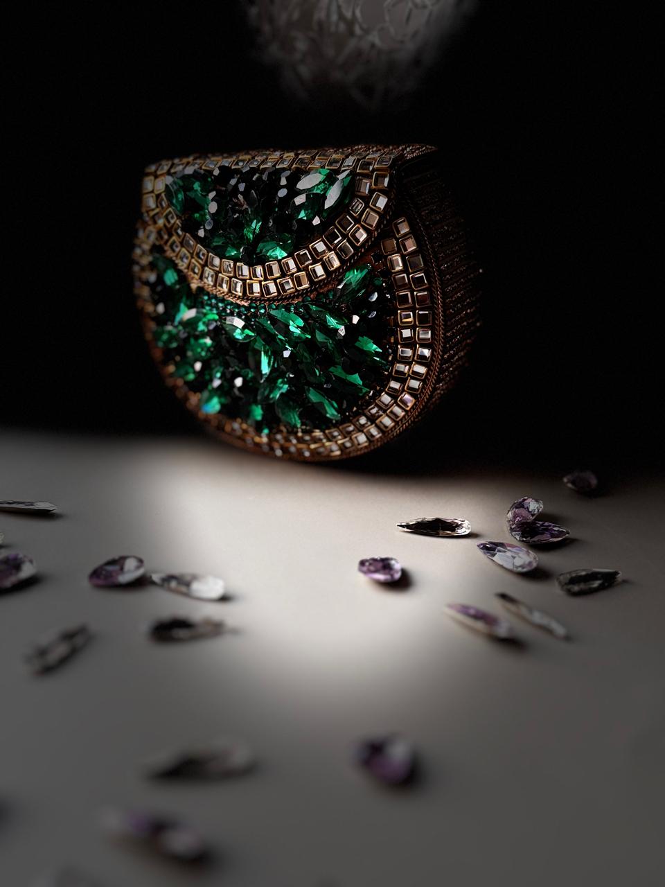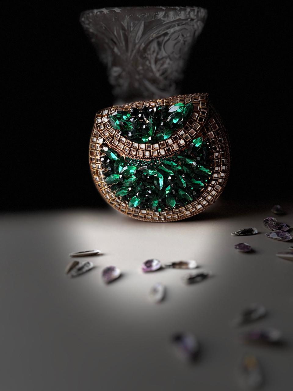 Our Emerald Crystal Clutch is here to steal the spotlight!
