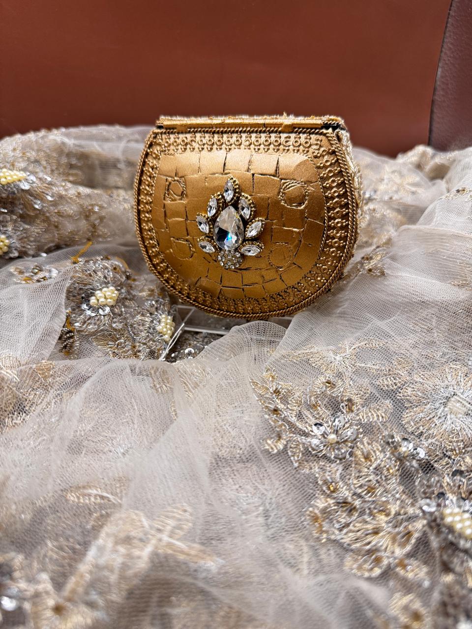 A statement piece that radiates elegance. Crafted in silver and gold tones, the Majestic Shine clutch is designed to make every occasion unforgettable.