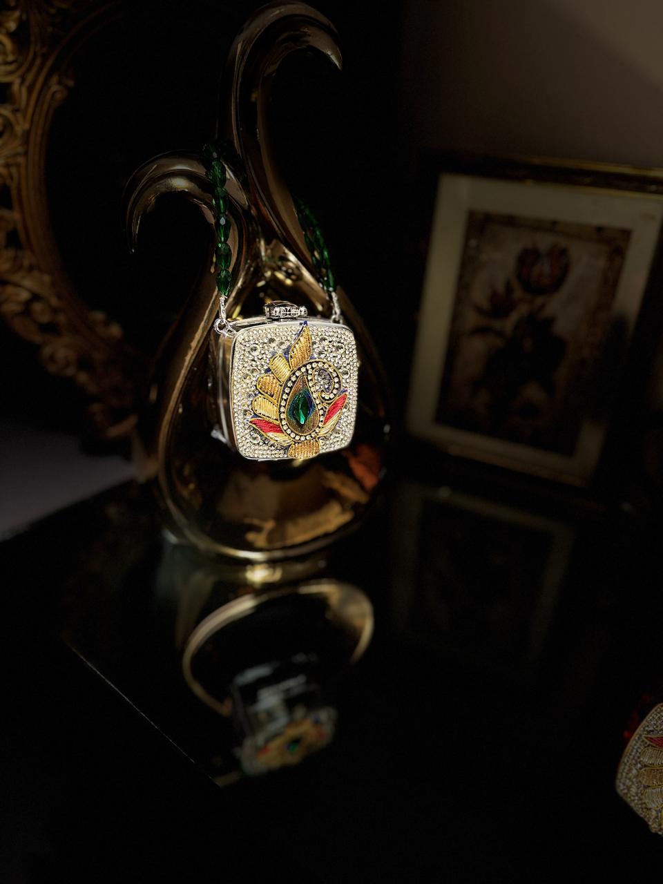 Silver & golden shimmer mini peacock — your new go-to accessory ✨